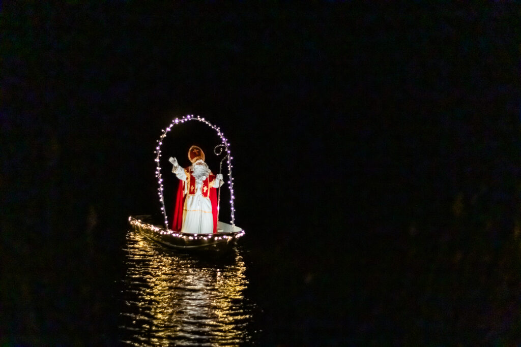 Ein besonderes Highlight gibt es wie jedes Jahr für die kleinen Besucherinnen und Besucher: Mit Einbruch der Dunkelheit wird der Nikolaus erwartet, der in Rurberg traditionell per Boot über den See anreist und natürlich auch Geschenke dabei hat.